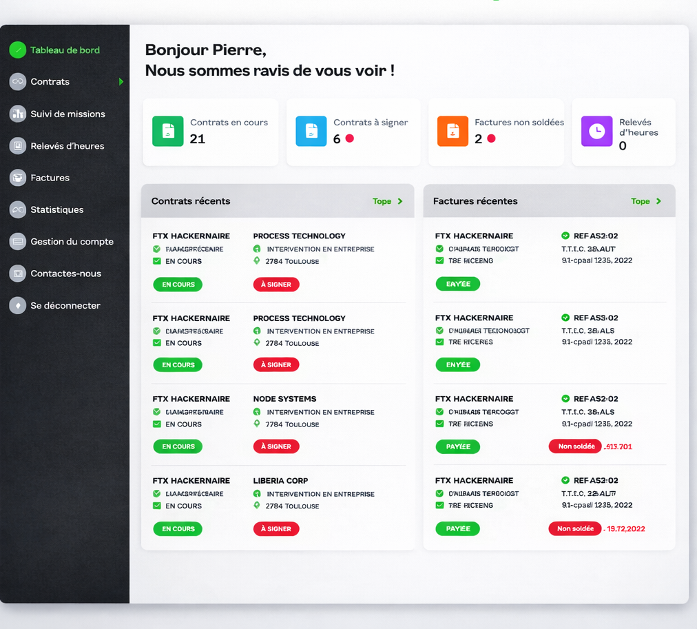Sofitex Online accompagne les entreprises faisant appel à des profils qualifiés avec un outil de gestion fiable et structurant. La plateforme facilite le suivi des missions expertes, sécurise les échanges et apporte une visibilité renforcée sur les ressources mobilisées.